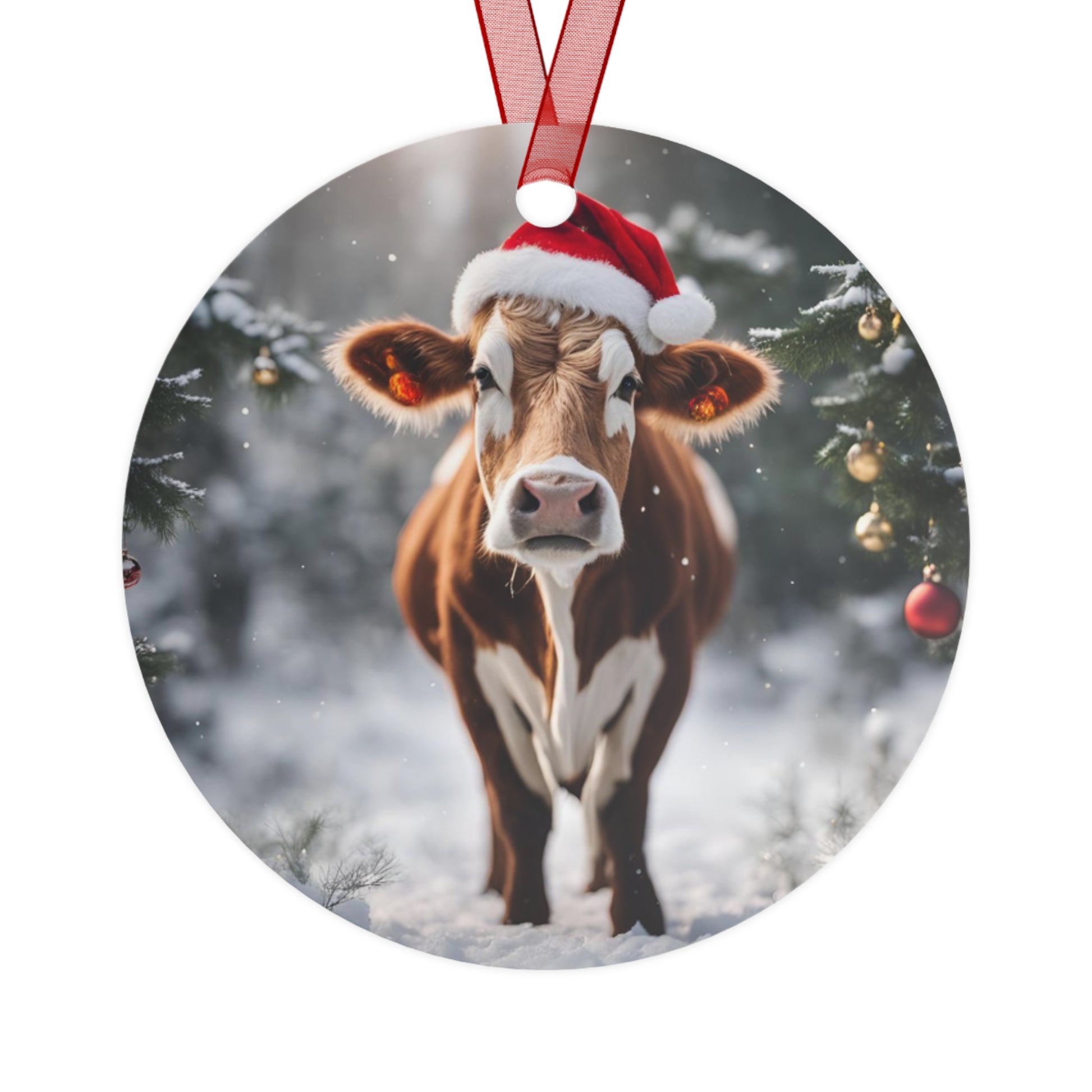 Cute Cow Christmas Ornament, Farm Animal Holiday Decoration, Rustic Tree Decor, Cow Lover Gift, Festive Metal Ornament