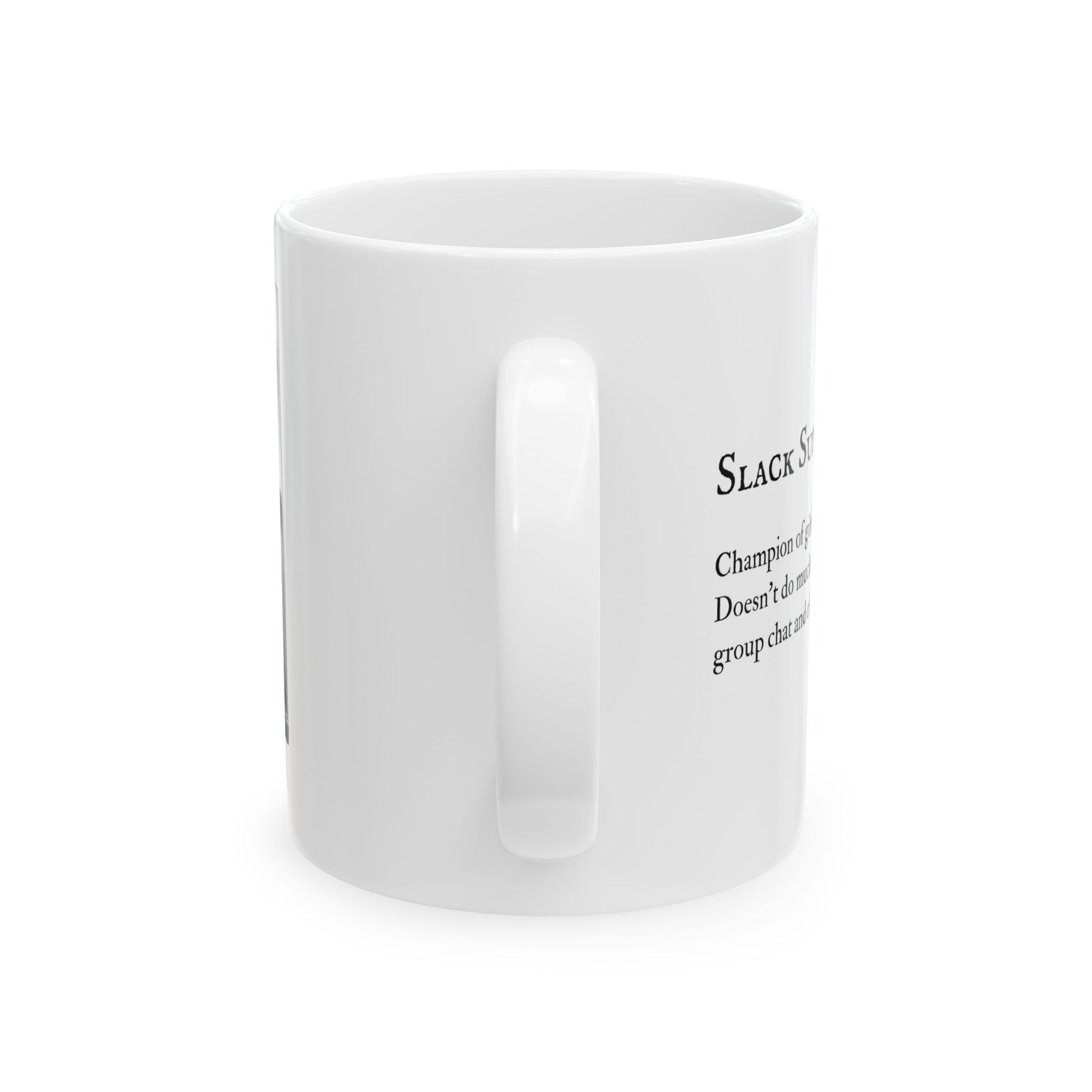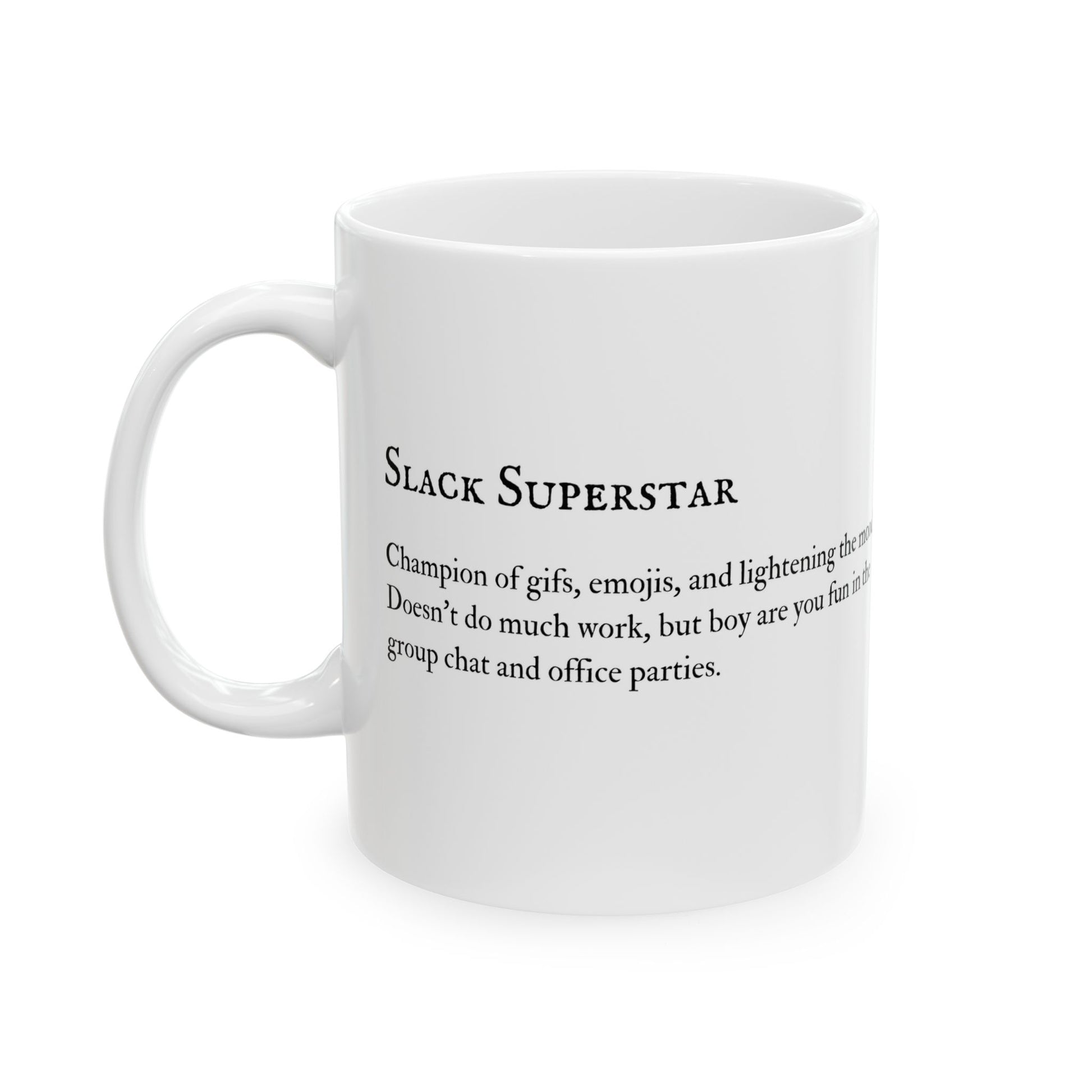 Funny Slack Superstar Ceramic Mug, Coworker Gift, Office Humor Cup, Work from Home Present, Team Building Coffee Cup