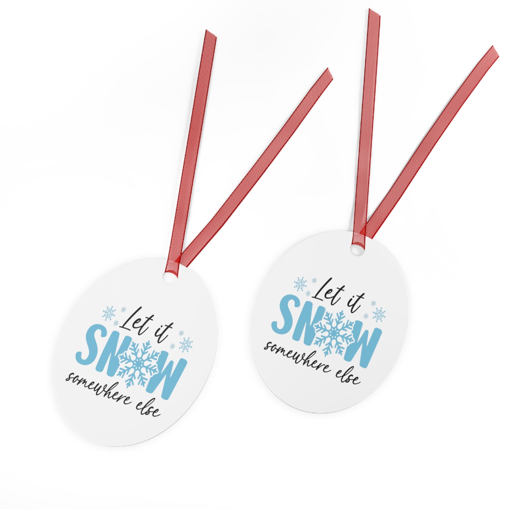 Funny Metal Christmas Ornaments - 'Let it Snow... Somewhere else' Holiday Decor