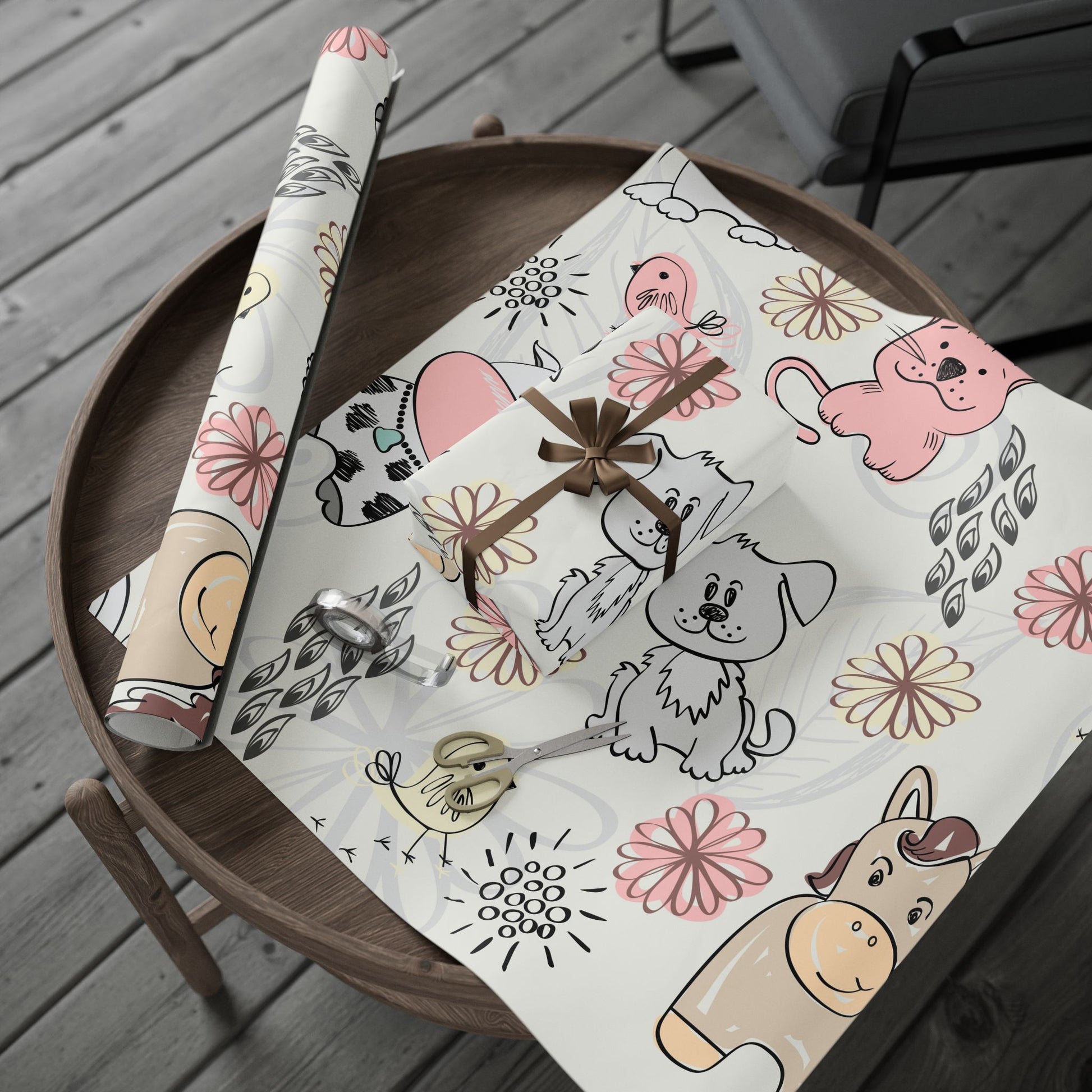 Whimsical Animal Wrapping Paper, Cute Gift Wrap for Birthdays, Holidays, Baby Showers, Floral Design, Eco-Friendly Packaging